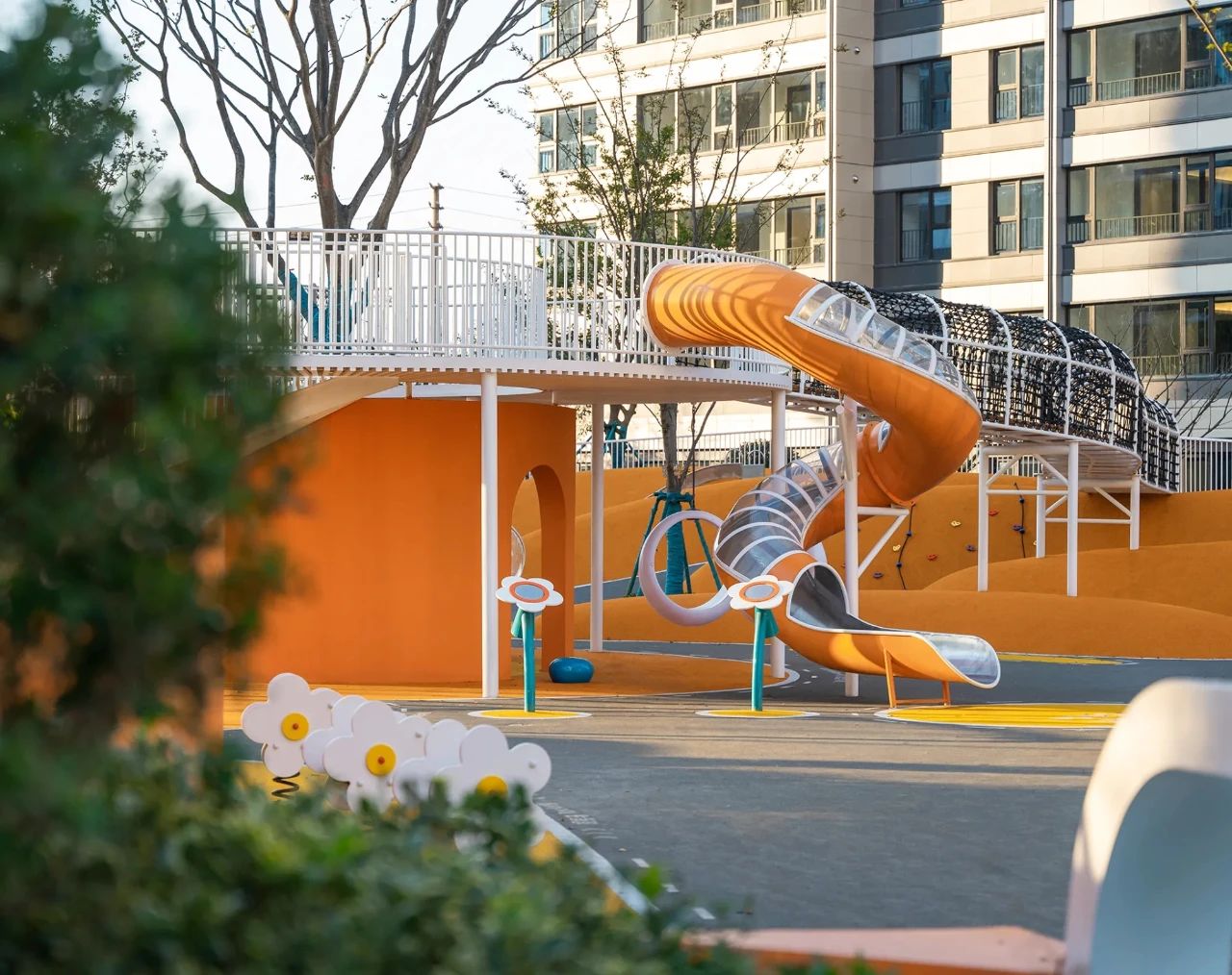 ▽連接場(chǎng)地的空中廊橋讓游玩空間充滿更多趣味