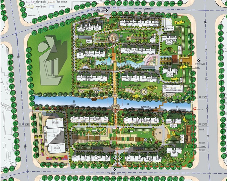 本案位于揚(yáng)州市經(jīng)濟(jì)技術(shù)開發(fā)區(qū)內(nèi),屬規(guī)劃中的揚(yáng)州市第二城中心地區(qū),其四至范圍為:維揚(yáng)南路以東、揚(yáng)子江中路以西、世紀(jì)家園居住小區(qū)以南。用地由南北兩個(gè)矩形地塊組合而成,整個(gè)用地被新城河分割成南北2塊,總建筑面積22.68萬平方米。設(shè)計(jì)富于創(chuàng)新,充分運(yùn)用現(xiàn)代風(fēng)格的新型住宅小區(qū)理念,體現(xiàn)個(gè)體與整體協(xié)調(diào),具備優(yōu)良社區(qū)生活品質(zhì),全力打造以山水園林景觀為特色的生態(tài)住區(qū),創(chuàng)造現(xiàn)代與傳統(tǒng)相輝映的品質(zhì)生活空間,同時(shí)具有良好的社會(huì)效益、經(jīng)濟(jì)效益、環(huán)境效益,成為揚(yáng)州未來生活環(huán)境的典范。